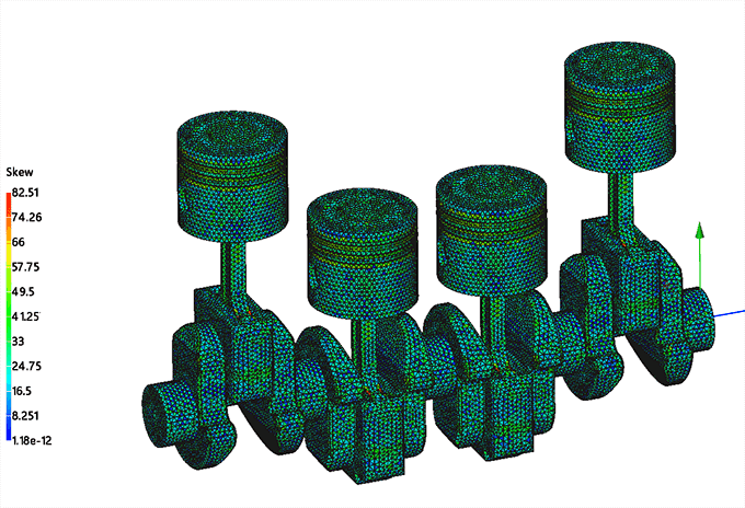 Proporciona la verificación de la calidad de la malla de acuerdo con criterios definidos por el usuario, como la relación de aspecto (aspect ratio), el Jacobiano, la deformación angular (skew), el ángulo mínimo y el ángulo máximo, para garantizar la precisión de la simulación.